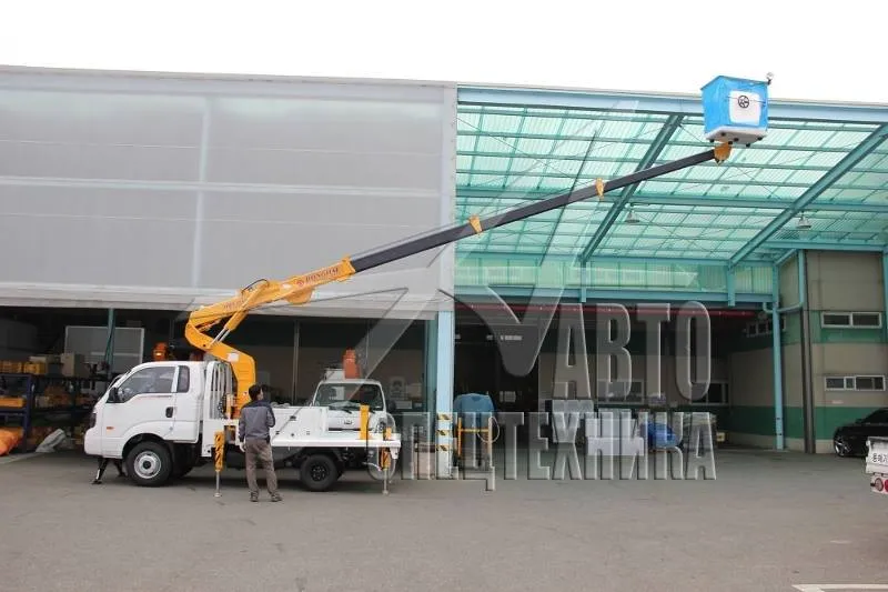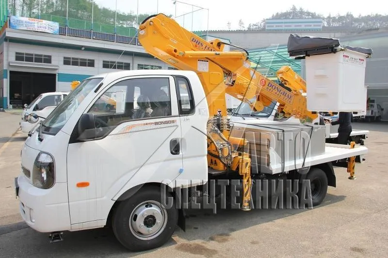 Автовышка Donghae DHS15AP корейского производителя Donghae Machinery подходит для работ в сферах городского и коммунального хозяйства в Вологде: выполнение электромонтажных работ, монтаж рекламных щитов и конструкций, ремонт кабельных линий. Также может использоваться в строительных работах. Она состоит из бортовой платформы и крановой установки с рабочей высотой стрелы 14,5 м.