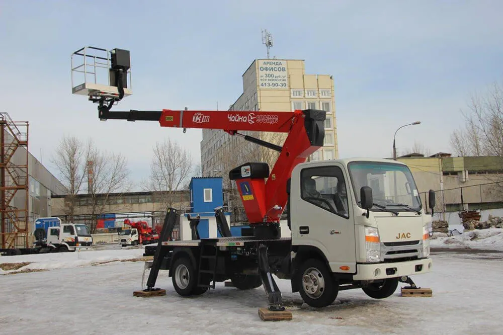 Автогидроподъемник (АГП) на шасси JAC 80 подходит для высотных работ на базе грузового автомобиля. Китайская спецтехника адаптирована под российские условия эксплуатации. К тому же автовышка отличается невысокой ценой, что является серьезным преимуществом.