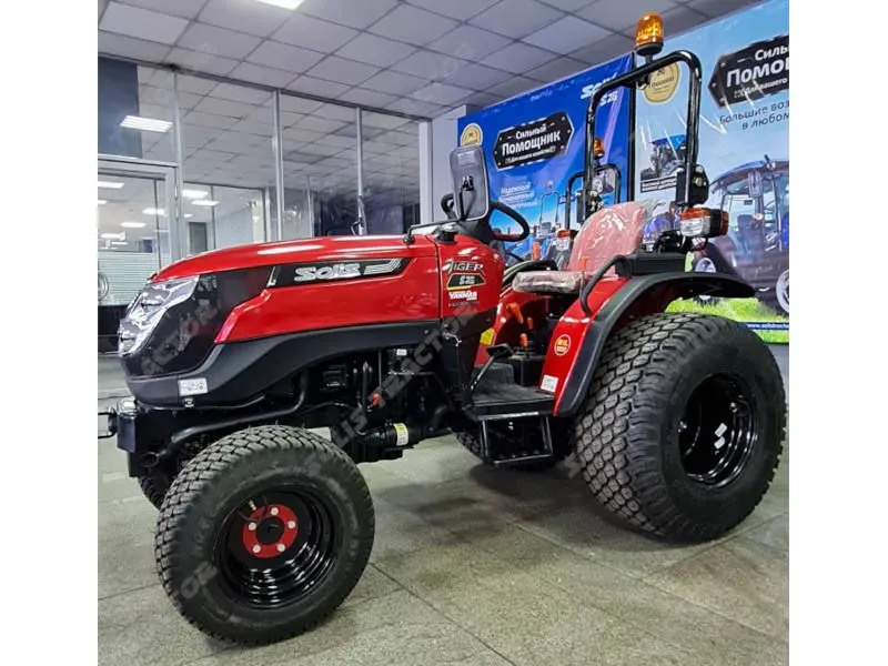 На минитрактор SOLIS 26 TIGER LIMITED EDITION RED можно установить фронтальный погрузчик (КУН) и колеса с разными шинами.